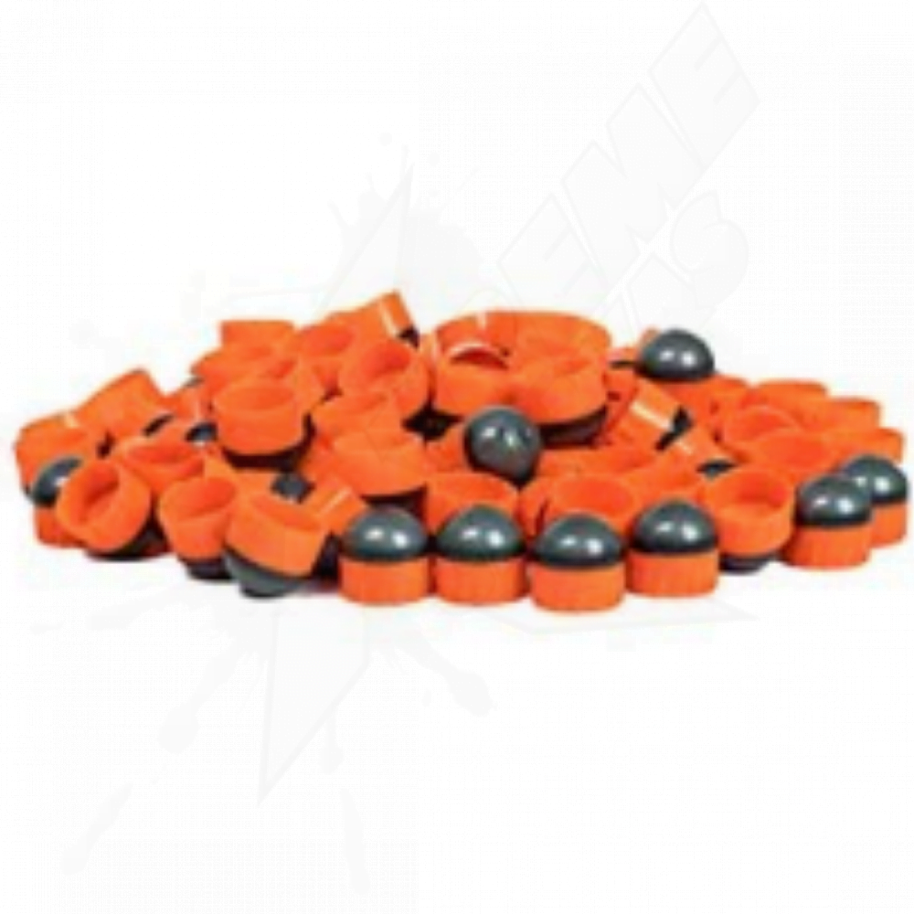 First Strikes are the most accurate paintball rounds available. Using a combination of aerodynamic shape and fin stabilization technology, First Strike fin-stabilized paintball projectiles maintain their velocity longer. The result is 50% greater range and unmatched accuracy. Since First Strike paintball rounds are made with a polystyrene shell (as opposed to the traditional gelatin shell), you no longer have to worry about opening a box of new paintballs only to discover they have been damaged during shipping. Finally, players have an alternative to volume accuracy or recoil tricks that simply change the paintball’s trajectory. Become one of the first true paintball snipers with the First Strike fin-stabilized paintball projectile.