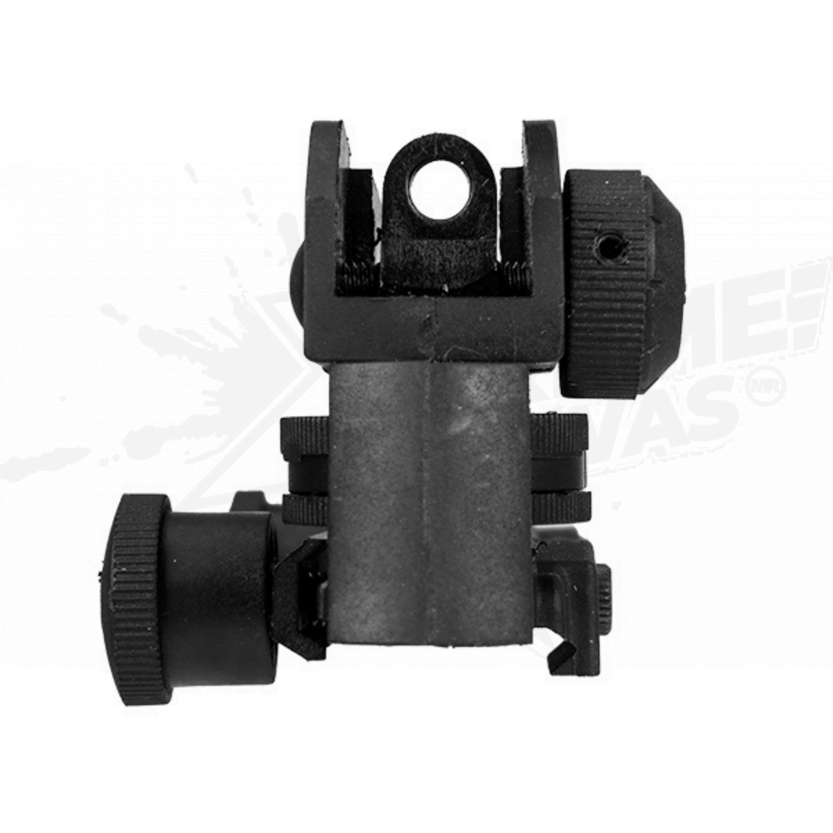 INTEGRATED METAL REAR SIGHT WITH ADJUSTABLE WINDAGE AND ELEVATION.