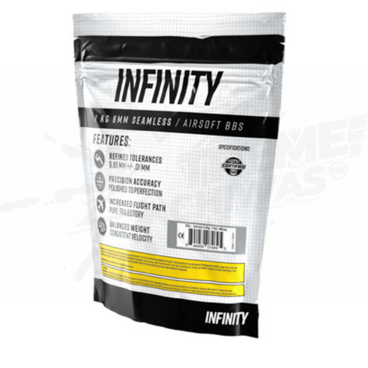 Infinity 0.20g airsoft BBs are 6mm precision plastic BBs from Taiwan that are highly polished and seamless BBs for 6mm airsoft rifles and airsoft pistols. Their ball-bearing quality precision gives the flight path greater accuracy and consistency. Infinity airsoft BBs are packaged in 1 kilogram resealable bags. We recommend our Valken M4 Magazine Style BB Speed Loader for use with Infinity BBs when loading mid-sized magazines.
