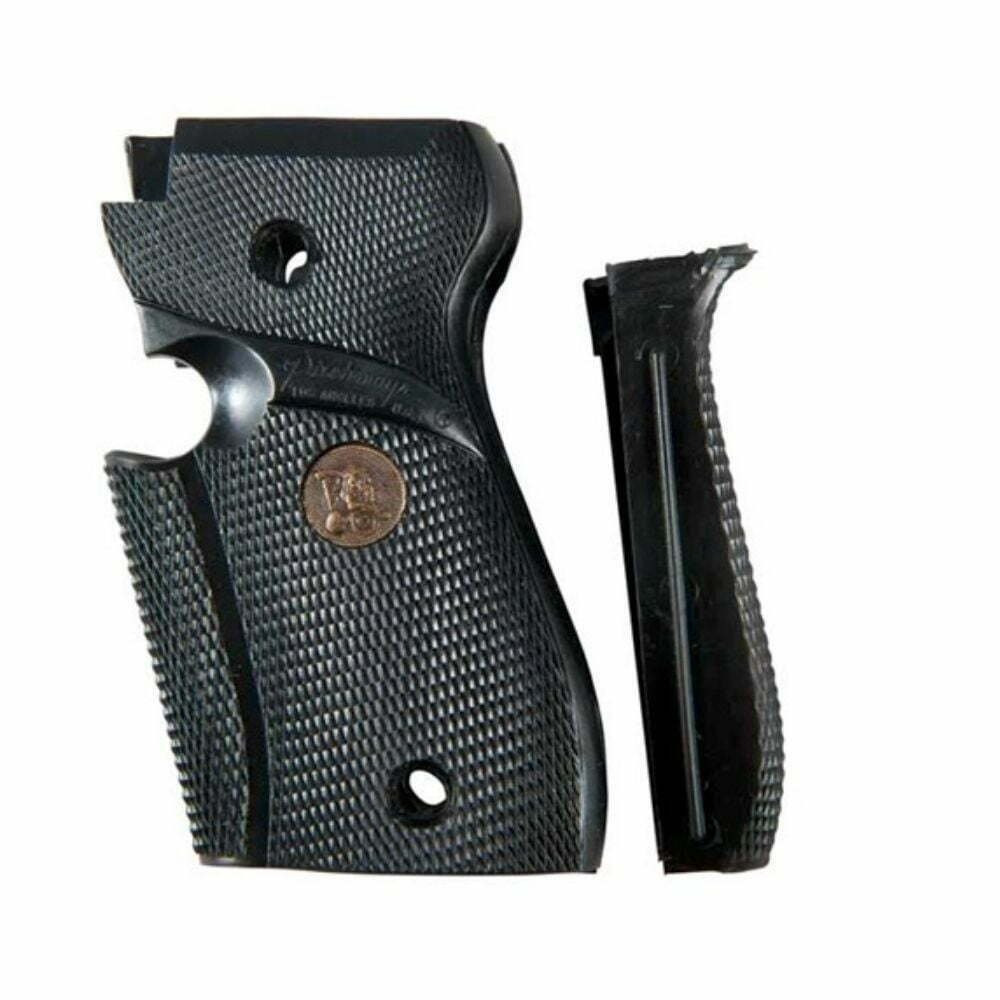 Pachmayr grips feature a patented, fully enclosed design and are made from rubber specially formulated for use in semi-automatic pistols. This rubber compound gives them a feel that is unmistakably Pachmayr. Built-in steel inserts ensure they retain their shape. Available in the widest variety of models for most popular semi-automatic pistols. Each is designed for a specific pistol and its intended use.