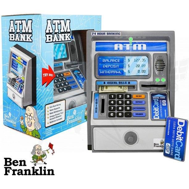 Kids ATM money bank teaches children how to save real money
