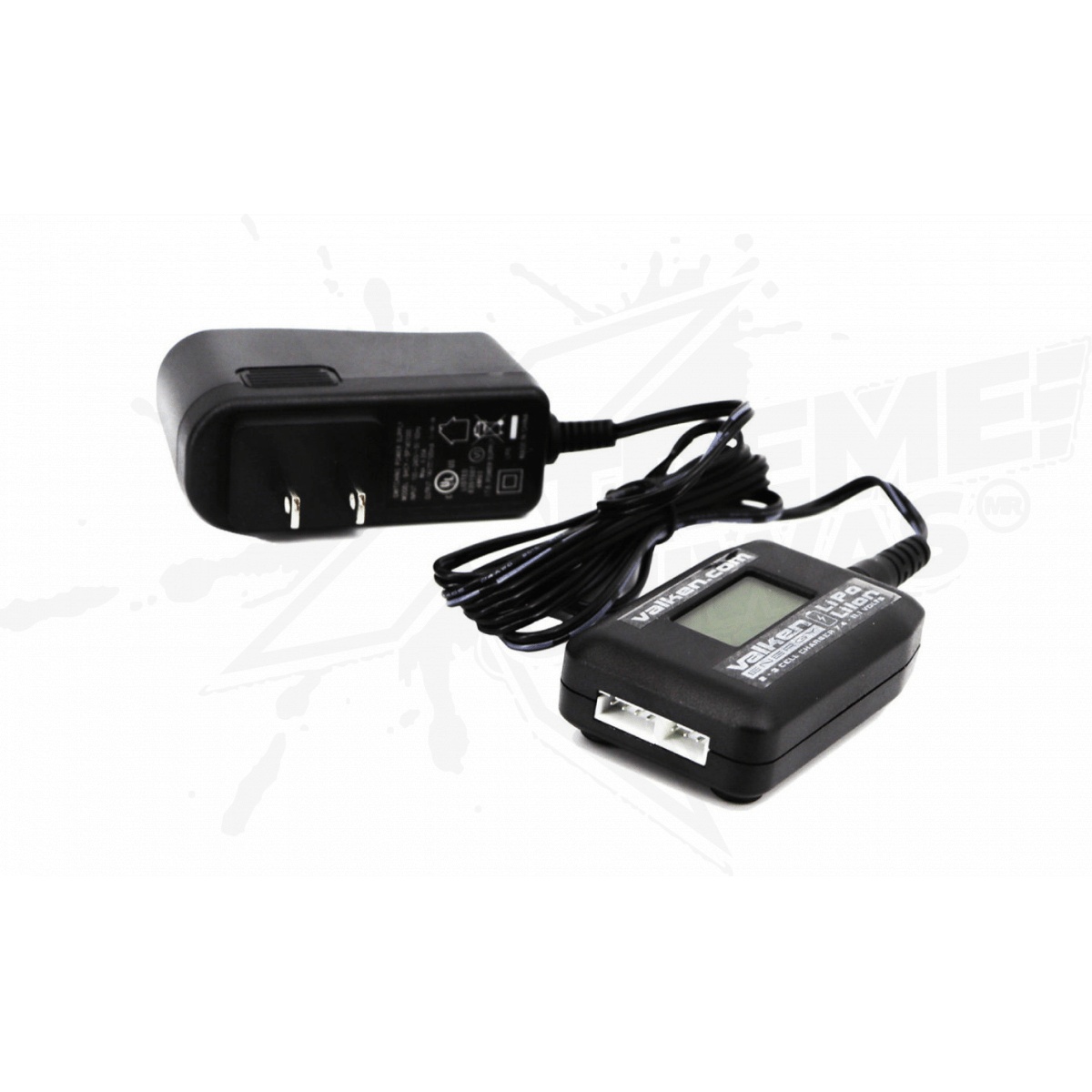 The Valken 2-3 Cell Li-Ion Digital Display Smart Charger is a smart balance charger for airsoft lithium batteries. The Li-Ion charger comes with its own power supply and charges Li-Ion battery packs at 1A via 3- or 4-pin charging ports. This airsoft lithium charger will safely charge both Li-Ion and Li-Polymer airsoft batteries safely and efficiently. The balance ports are compatible with 7.4v and 11.1v, which intelligently balance each individual cell to ensure maximum lifespan. They have an extremely compact design, and the digital display shows the battery voltage capacity and charge percentage. The LiPo charger also features built-in short circuit and reverse polarity protection, as well as overcharge and overcurrent protection.