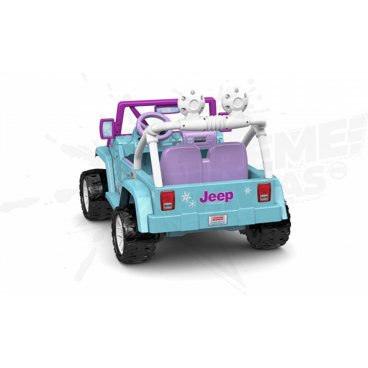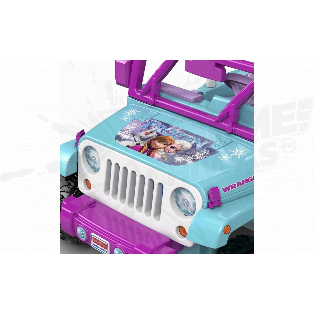 Young drivers will love racing off-road adventures in the Power Wheels Disney Frozen Jeep Wrangler ride-on. Featuring realistic Jeep Wrangler styling that includes a distinctive rollover grille, working doors and rear storage area, plus awesome Disney Frozen colors and graphics and a pretend radio, this vehicle is a dream come true for your little Frozen fan.