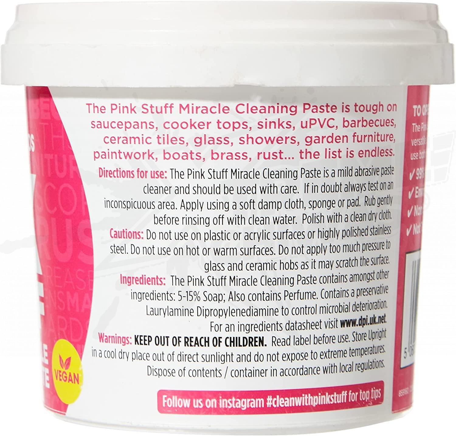• Pink Stuff Miracle Cleansing Paste contains, among other ingredients: 5-15% soap, also contains fragrance, and contains the preservative laurylamine dipropylene diamine to control microbial spoilage.