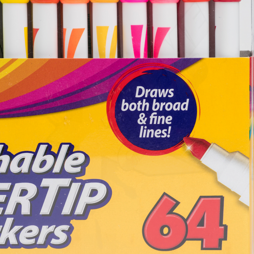 Be “always creative” with Cra-Z-Art! Cra-Z-Art Washable SuperTip Markers, 64 Count 64 different colors Draw fine and broad lines Super bright colors! Washable markers wash easily from children’s skin and most fabrics with soap and water. Safe, non-toxic
