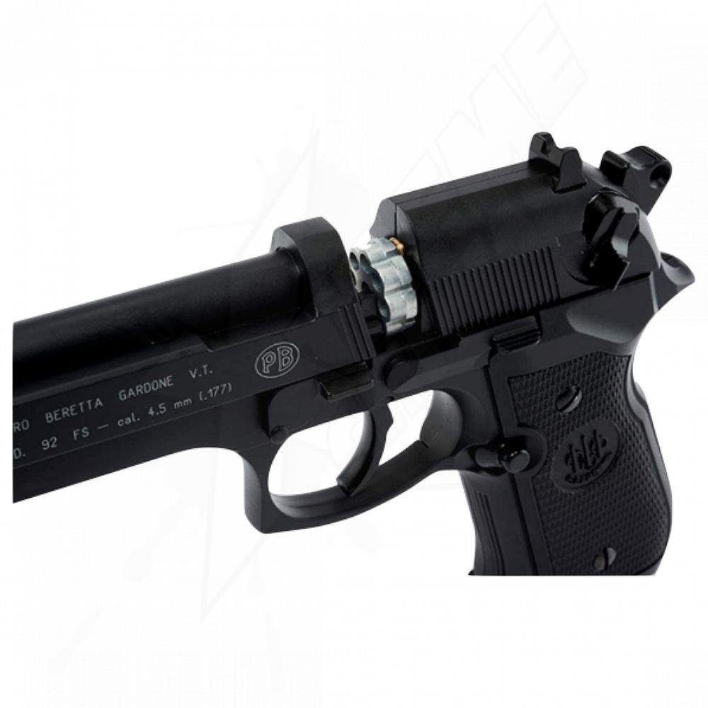 The Mod. 92 FS airsoft pistol is an officially licensed replica of the real Beretta 92FS. It is lightweight and has the same branding as the real firearm on which it is based. This airsoft pistol features semi-automatic electric blowback firing, a 16-gauge magazine, and a good 150 fps (with 0.12 g of BBs).