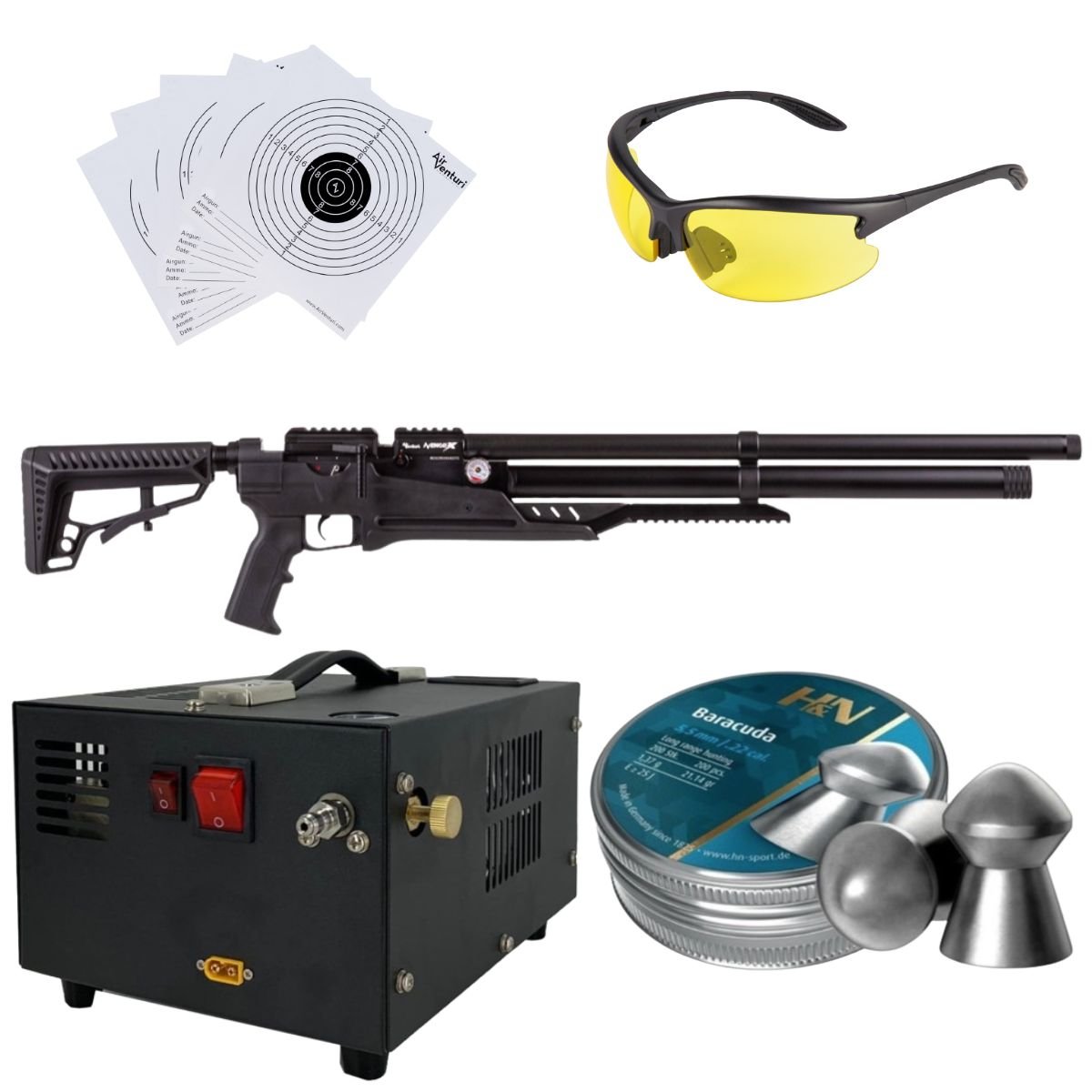Rifle Air Venturi Avenge-X Tactical PCP .22 (5.5mm) TUBE 210cc Kit C/Compressor, pellets, lenses, targets.