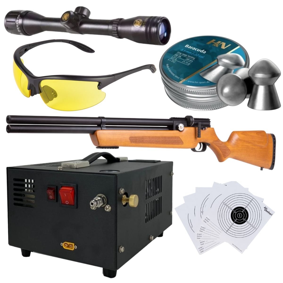 Venturi Avenger Wood Air Rifle Regulated PCP .22 Kit with Compressor, Pellets, Sight, Lenses, Targets.