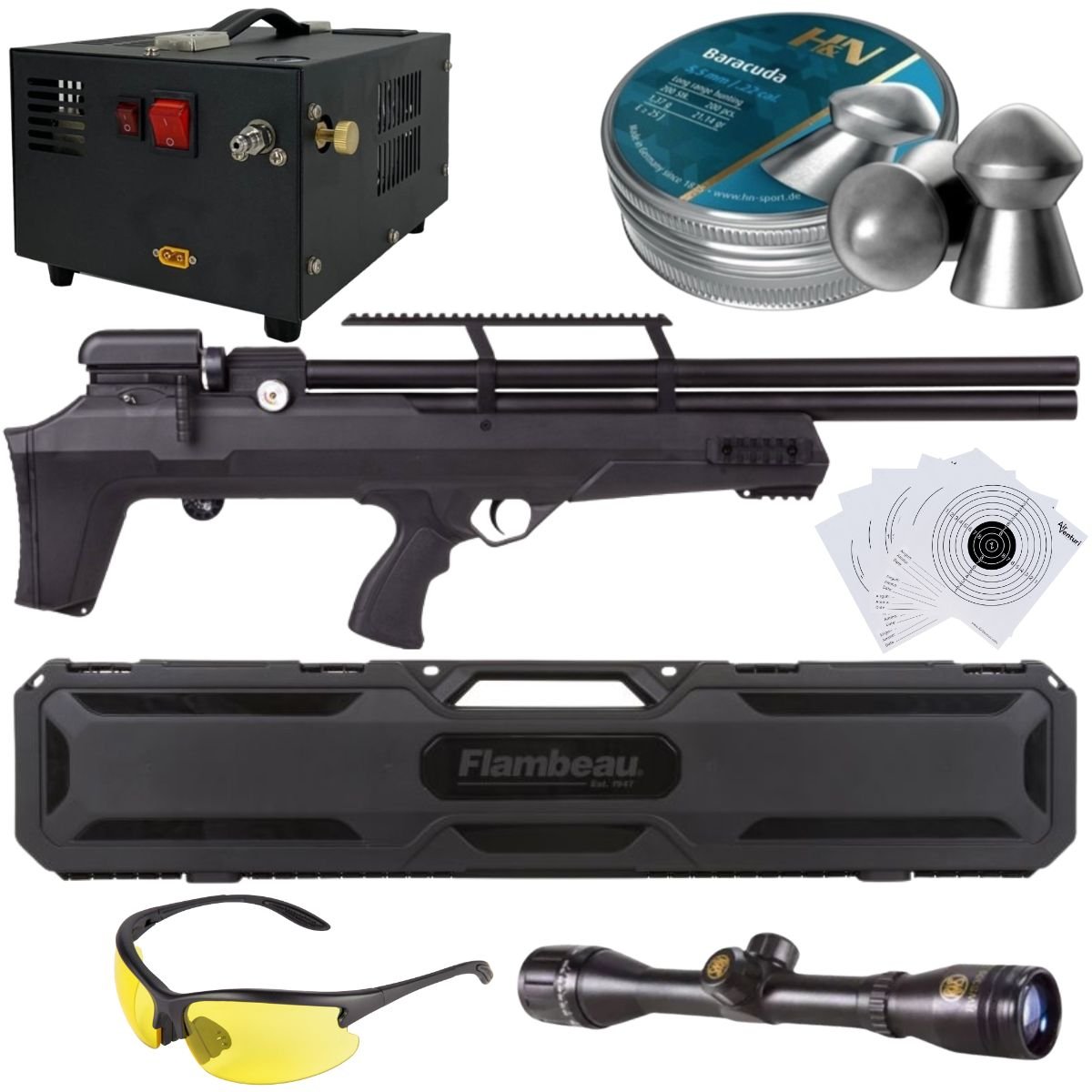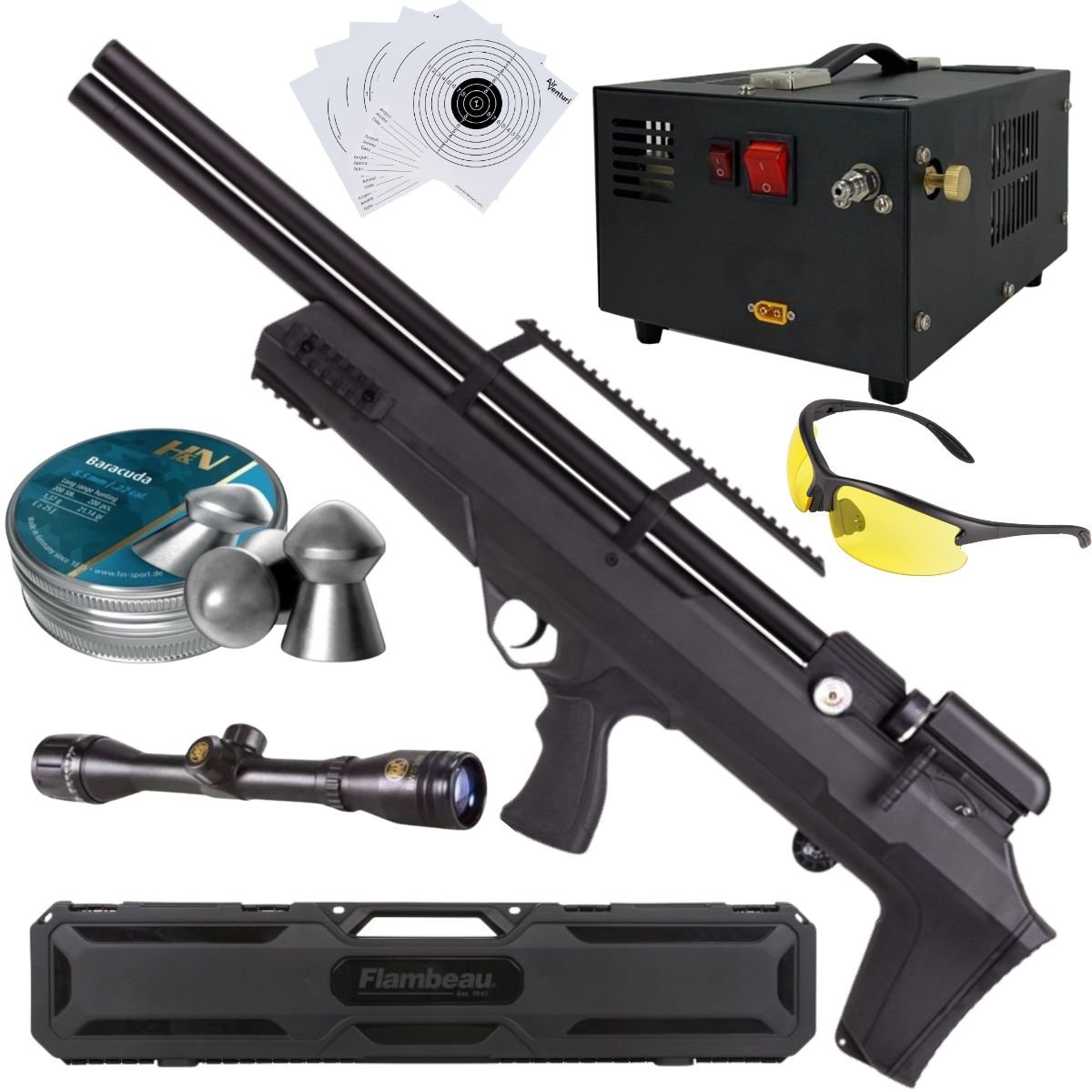 Avenger Bullpup PCP Air Rifle .22 (5.5mm) COMPRESSOR, LENSES, PELLETS, SIGHT, CASE
