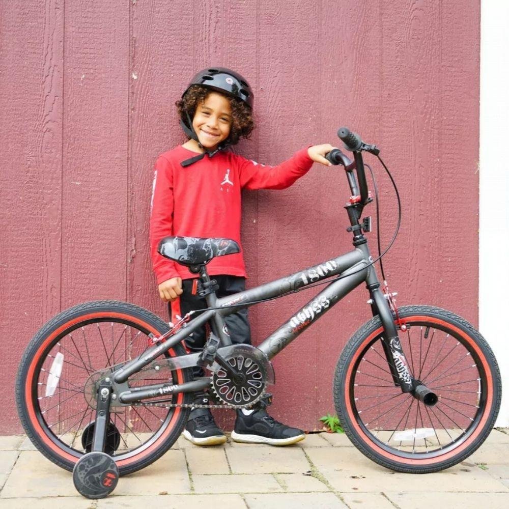 Kids will enjoy the wind in their face and blasting down the pavement on the Kent Abyss 18″ Freestyle Kids BMX Bike. It has sleek styling and is a good intermediate model for the budding freestyler. This charcoal gray bike has all the same features as the adult version, but is suitable for a littler kid who isn’t quite ready for the full size. It’s built with a steel frame for extra sturdiness and comes with removable training wheels for a smooth transition. This kids BMX bike has a saddle-style seat with nice padding and hand brakes to ensure safe stops.