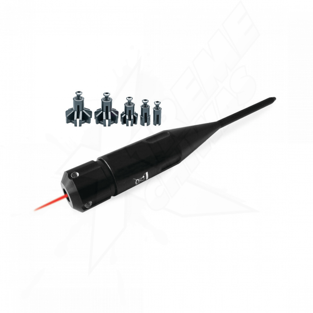 Its bright, battery-operated laser performs the job of a collimator quickly and extremely accurately. Manufactured to meet the demands of serious gunsmiths and shooters, it includes rods for .22 to .50 caliber firearms and adapters for .12 and .20 caliber shotguns.