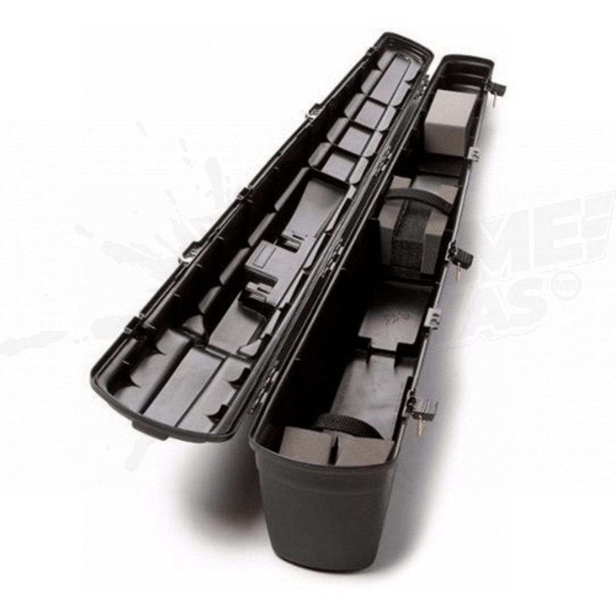Show your rifle how much you care! Holds your scoped rifle (up to 50″ long) upright, strapped in foam. Plano’s AirGlide 1301 provides an “air cushion” for rifles. Two high-density foam inserts and securing straps allow the gun to literally “float” inside the case. Two heavy-duty foam latches and hinges with solid brass hardware. Oversized, easy-carry handle. Lockable and airline approved. Black