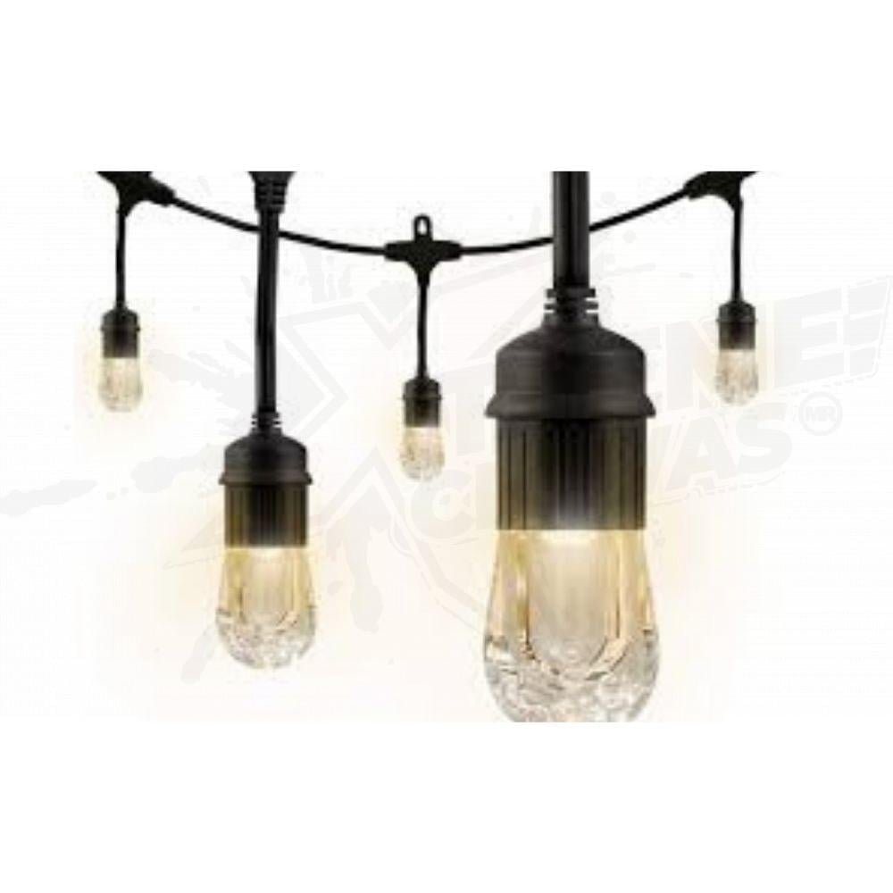 Get warm, incandescent lights for your outdoor parties and events. This 24-foot-long string of 12 incandescent bulbs can be combined with up to 10 other strings for a total of 240 feet of light. The 11-watt non-glare bulbs produce a warm, cheerful glow.