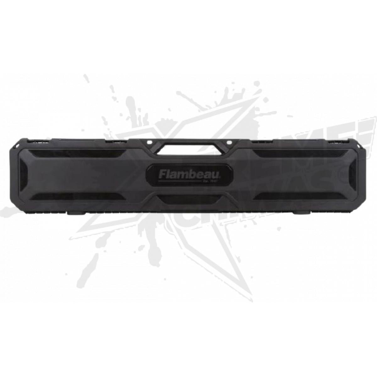 2. FLAMBEAU CASE: Thick egg-crate foam. 4 latches with holes for padlock insertion. 45.5″ L x 8.5″ W x 3″ D (interior dimensions). Black.