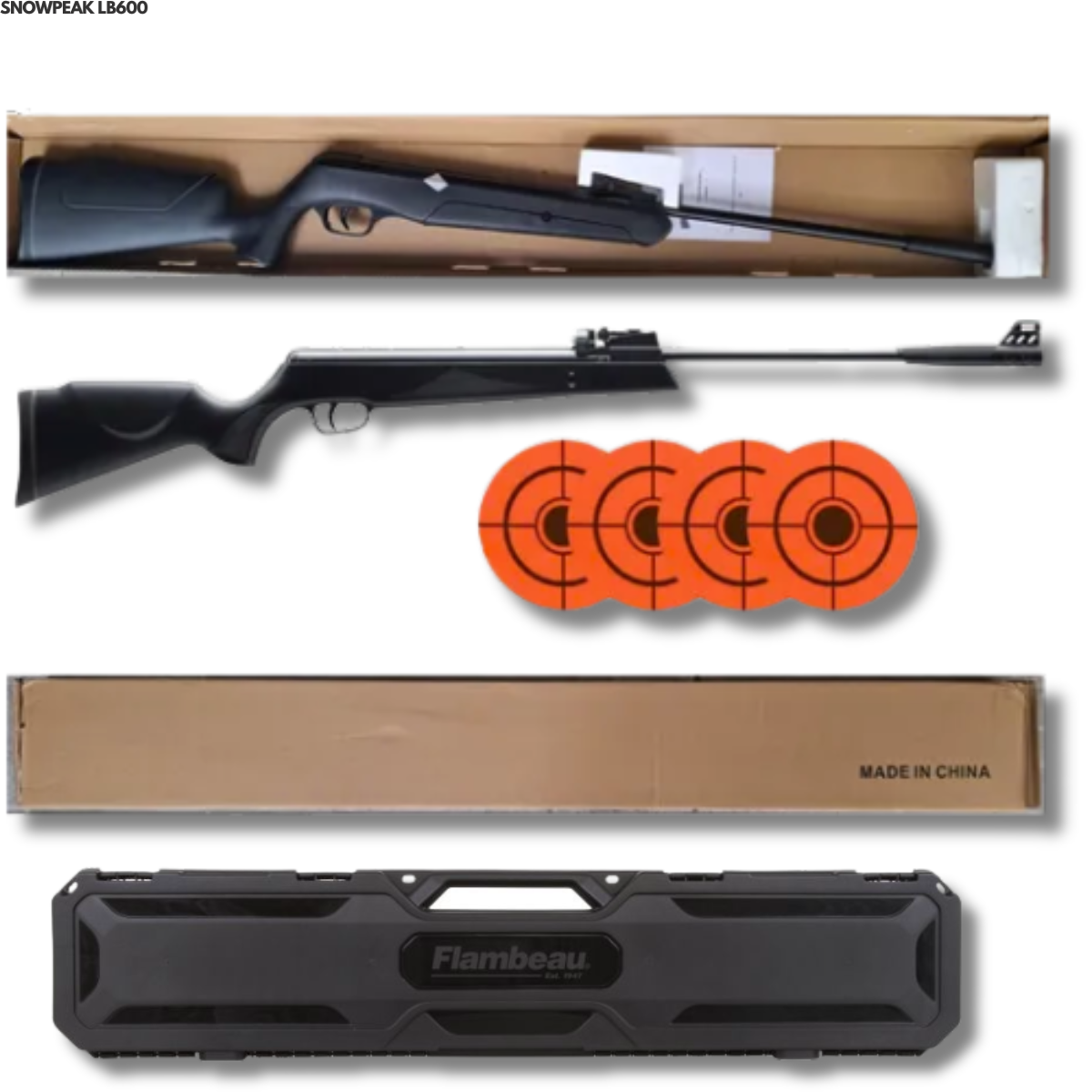 The SnowPeak LB600 is a break-barrel air rifle designed to offer accuracy, control, and comfort with every shot. It operates using a spring-piston system, delivering up to 10 joules of energy in 5.5 mm caliber, making it ideal for sport shooting, plinking, and recreational backyard training.