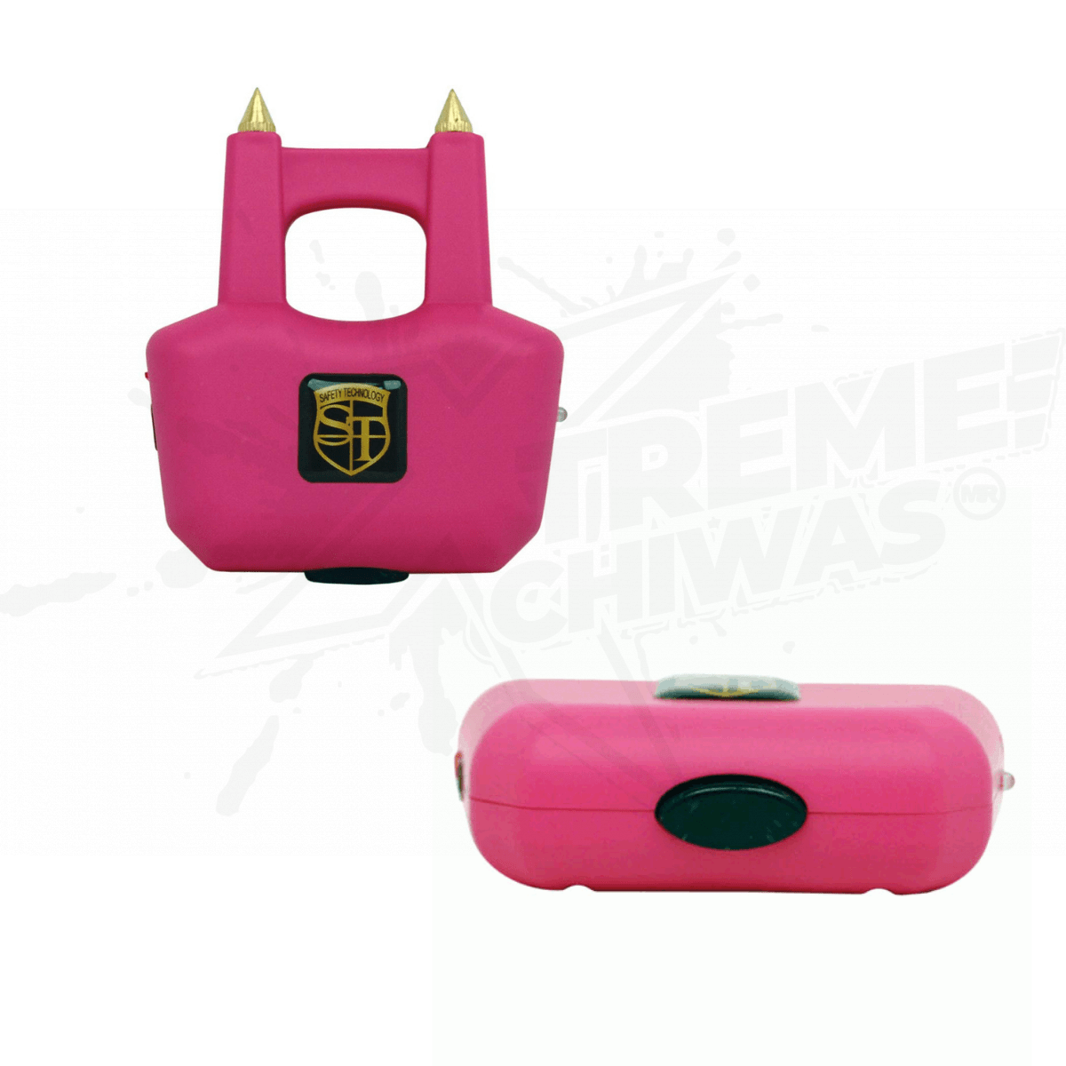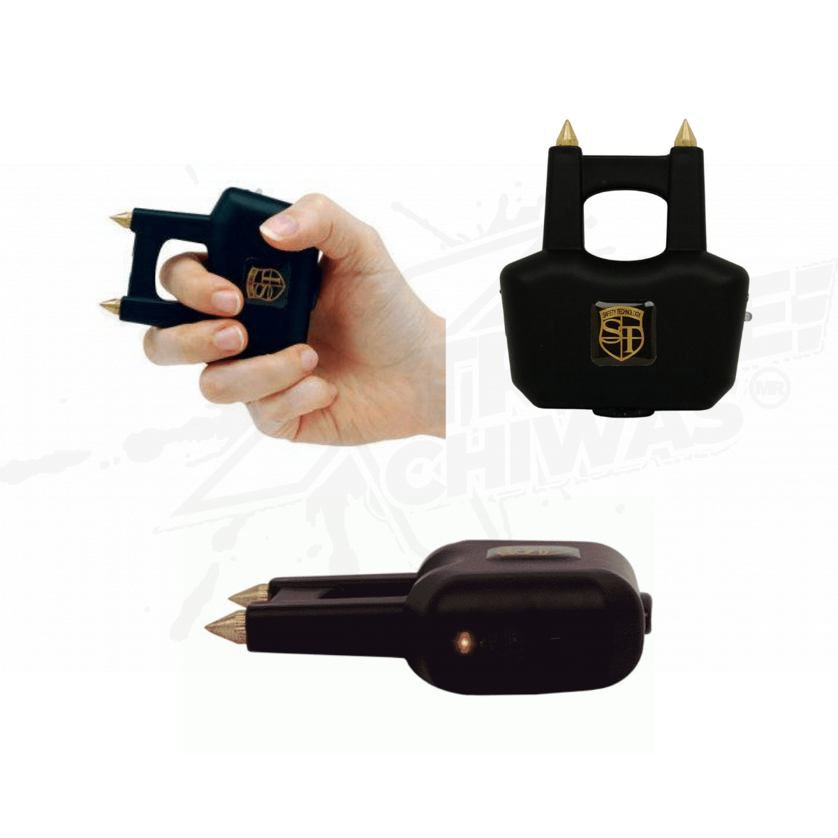 Spike Stun Gun 20 Million Volt Safety Technology. Devastating protection in the palm of your hand! Designed to shock your attacker with brutal force. Two sharp prongs act as electrodes for 20 million volts of stopping power! The SPIKE stun gun comes with a rubber coating, providing a comfortable, non-slip grip. Resting discreetly in your hand, the activation button is activated by your palm. The Spike discharges loudly, easily capable of deterring a confrontation before it begins!